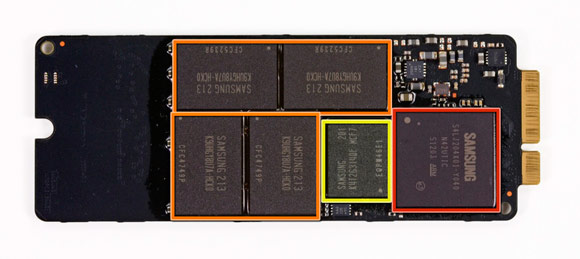 Никаких стандартов, никакой преемственности. Модуль твердотельного накопителя (512 Гб) в MacBook Pro совсем не такой, как в новом Air, и оба они дружно отличаются от планки SSD из Air 2011 года.