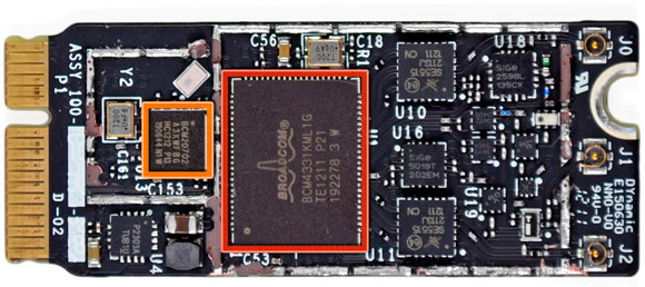 • Красный — двухдиапазонный чип 802.11n, Broadcom BCM4331;