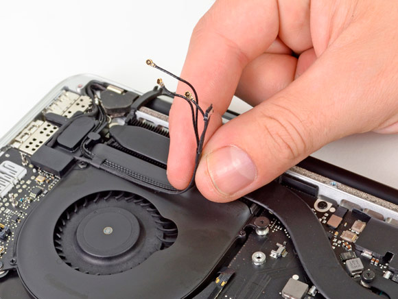 Отсоединив проводки, ведущие к антеннам, вы сможете добраться до одного из кулеров.