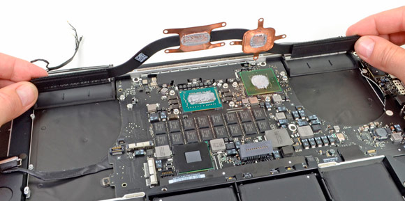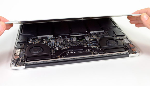 С MacBook Air опытные специалисты iFixit всего-навсего подогревали наш интерес в преддверии самого главного. Самое главное произошло! Им на стол угодил новенький MacBook Pro с Retina-дисплеем. Let’s see…