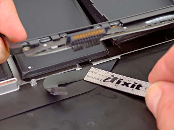 …но, опасаясь прокола аккумуляторной ячейки, прекратили свои попытки. Другими словами, батарею либо нельзя снять вообще (!!), либо это крайне трудоёмко — а значит, трекпад тоже не снимешь. Тем более, что есть риск повредить его тончайший шлейф: