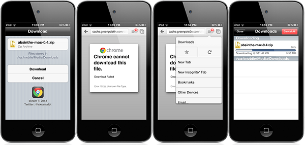 Чуть ранее для браузера Chrome уже был создан твик для загрузки файлов – Chrome Download Enabler. Всё, чего не хватало данной утилите, так это менеджера загрузок. Новый твик Chrome Download Manager, который уже доступен в Cydia Store, позволяет скачивать файлы с тем самым визуальным менеджером (как это реализовано в Safari Download Manager).