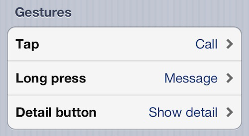 Данный твик позволяет настроить “быстрые действия” на имена абонентов в телефонной книге iPhone (доступной как через “Телефон”, так и через “Контакты”): например, через настройки CallTap можно на долгий тап по имени назначить отправление СМС, а на нажатие иконки “детали контакта” – отправление e-mail. Возможно, звучит это сложно, но стоит один раз зайти в настройки твика, как всё становится прозрачно донельзя.