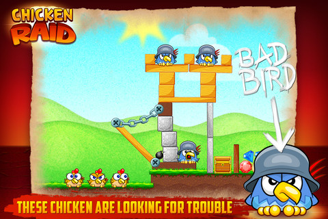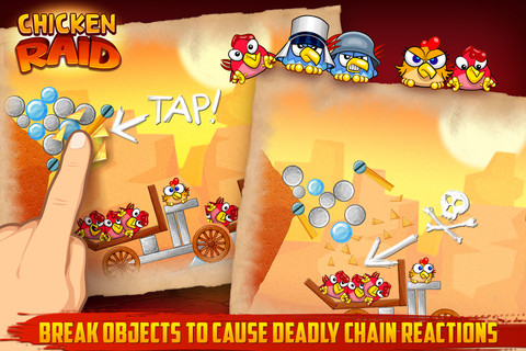 FDG Entertainment рада объявить о выходе нового приложения Chicken Raid, ранее она была только на флешь и пользовалась большим успехом у игроков, 2 августа нас ждет перезапуск замечательной игры уже на iOS устройства. Chicken Raid был воссоздан с новой графикой, звуками и уровнями специально сделаны для iPhone и iPad. По сути Chicken Raid это клон замечательной и весьма популярной игры Angry Birds от Rovio, только с одни но… Игрокам требуется нажимать на определённые объекты, чтобы уничтожить их и вызвать цепную реакцию.