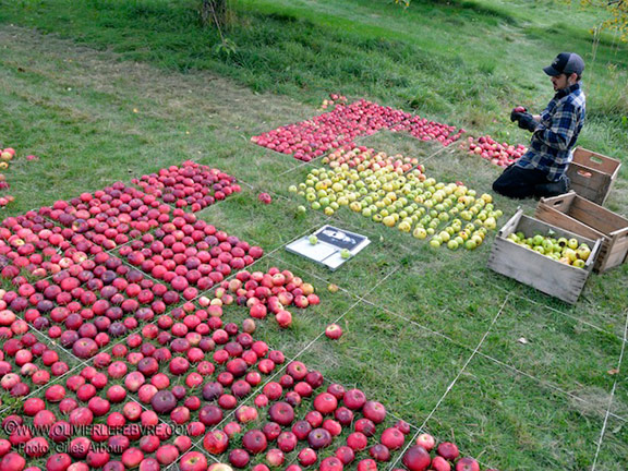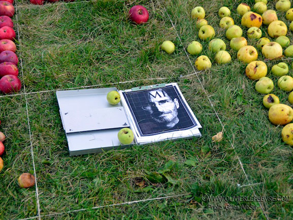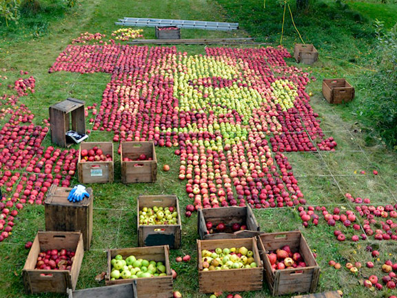 Один из канадских художников Оливер Лефебр решил сделать портрет Стива Джобса, только не на холсте, а на земле, при этом используя разноцветные яблоки. Затея получилась очень оригинальная и интересная, при этом по завершению работы получился очень красивый портрет.