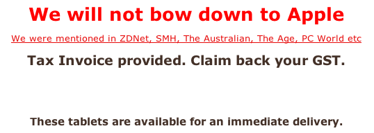 Apple удалось запретить продажи планшетников Galaxy Tab 10.1 в том числе и в Австралии. Но эйфория в данном случае неуместна. Суровые решения суда в пользу Apple не отменяют использование простых хитростей бизнеса, позволяющих обойти запреты “яблочников” .