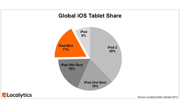 В преддверии презентации новых iPad’ов, аналитики подсчитали сколько в процентном отношении приходится на планшеты iPad и iPad mini. В процентах на весь рынок планшетов от Apple iPad достаётся – 83%, а на iPad mini остаётся – 17 %.