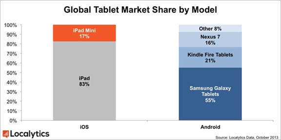 К примеру, все планшеты на Андроиде имеют чуть другую конкуренцию, где явно преобладают планшеты от Samsung, следом за ними идут Kindle.