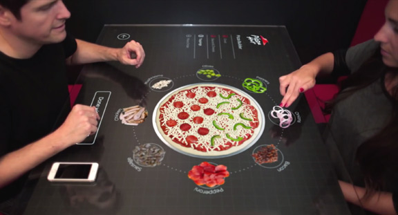 Сеть ресторанов Pizza Hut решила продемонстрировать свой стол выбора пиццы, с помощью которого, можно оплатить и оформить заказ. Оплата заказа также происходит с помощью iPhone, который можно положить рядом с собой и все платежи будут пройдены автоматически.