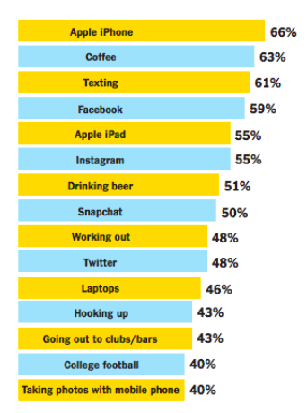 В США студентов опросили на то, чем они занимаются в свободное время от занятий, опрос проводила известная кампания – Student Monitor, также в опросе приняло участие около 1200 студентов из разных вузов и колледжей. На первую строчку вышел iPhone, около 66 процентов респондентов подтвердили, что в свободное время пролистывают приложения на смартфоне.